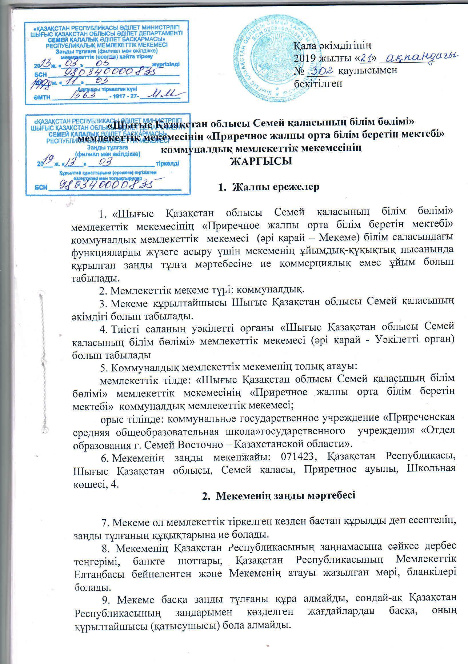 Мектеп жарғысы » Приреченская средняя общеобразовательная школа