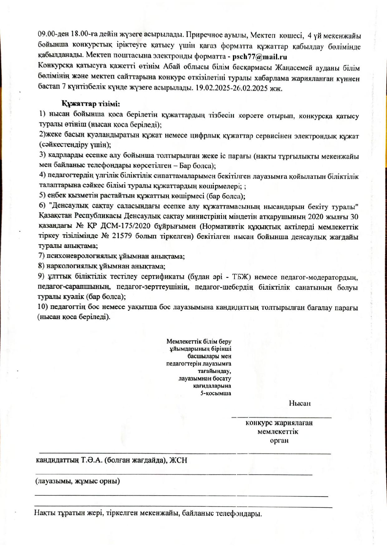 Директордың тәрбие ісі жөніндегі орынбасары лауазымына конкурс » Приреченская средняя общеобразовательная школа