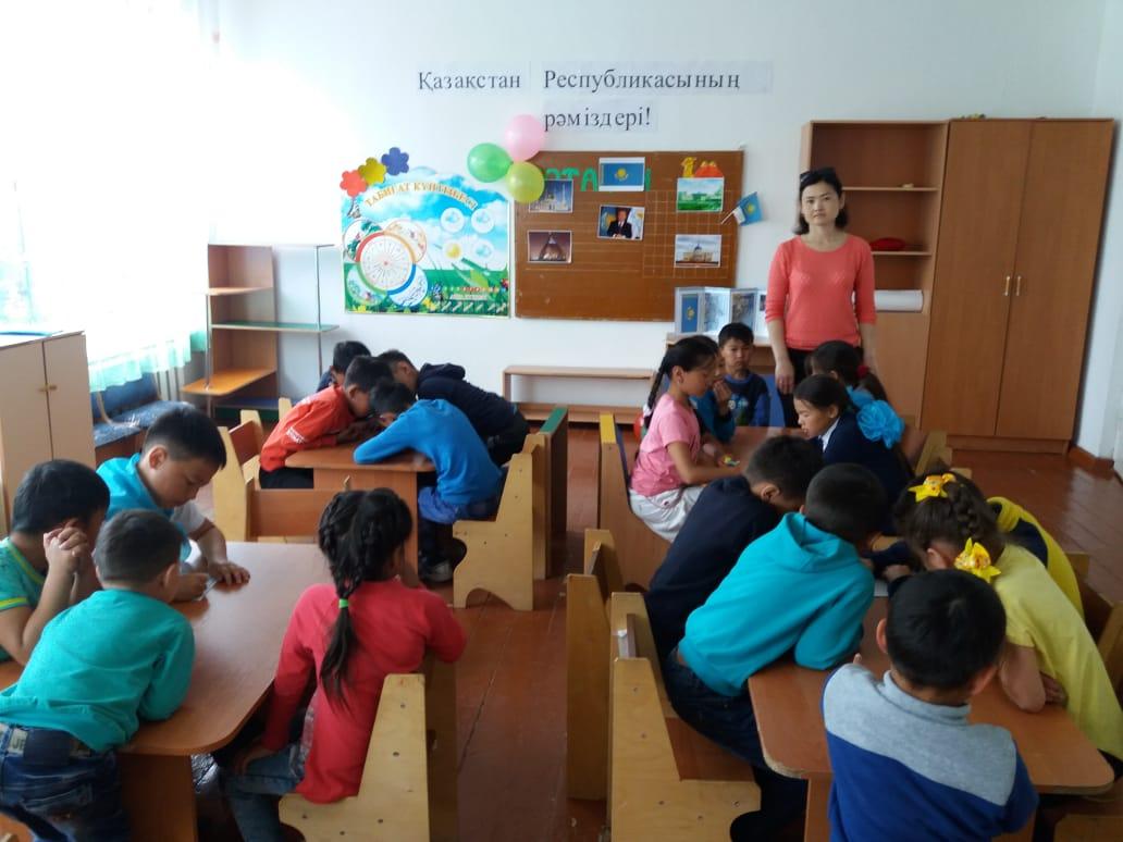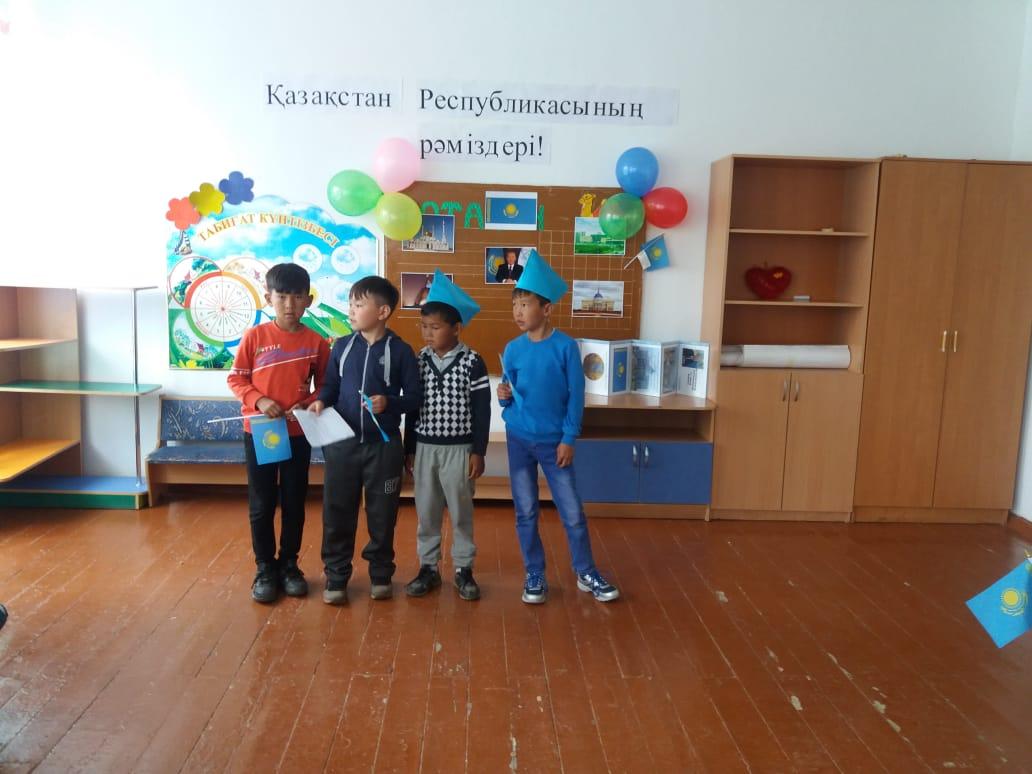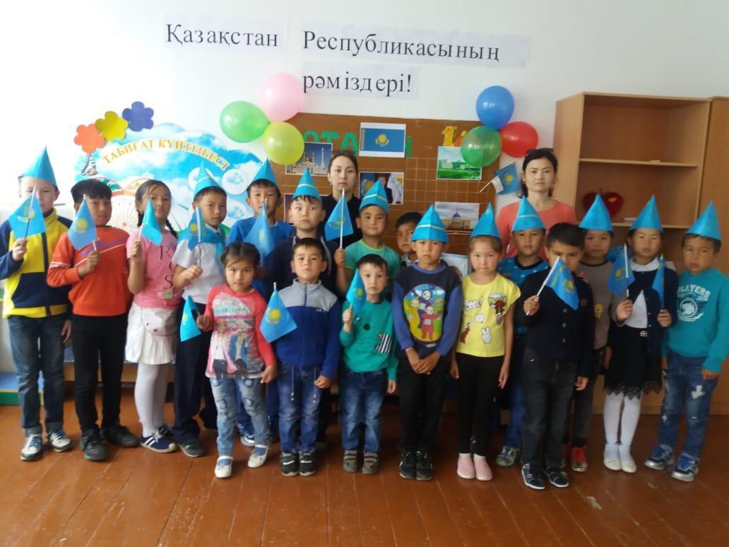 Мектеп жанындағы «Ақжелкен» лагерінде — Қазақстан Республикасының мемлекеттік рәміздері күні аталып өтті. 1992 жылғы маусымның 4-де Тәуелсіз Қазақстанның жаңа мемлекеттік рәміздері алғаш рет бекітілді — бұл күн ел тарихында жаңа мемлекеттік рәміздер күні ретінде мәңгі есте сақталады. Мемлекеттік рәміздер — мемлекеттің мызғымас негіздерінің бірі. Мемлекеттік Ту, Мемлекеттік Елтаңба және Мемлекеттік Әнұран мемлекеттің негізгі рәміздері саналады.