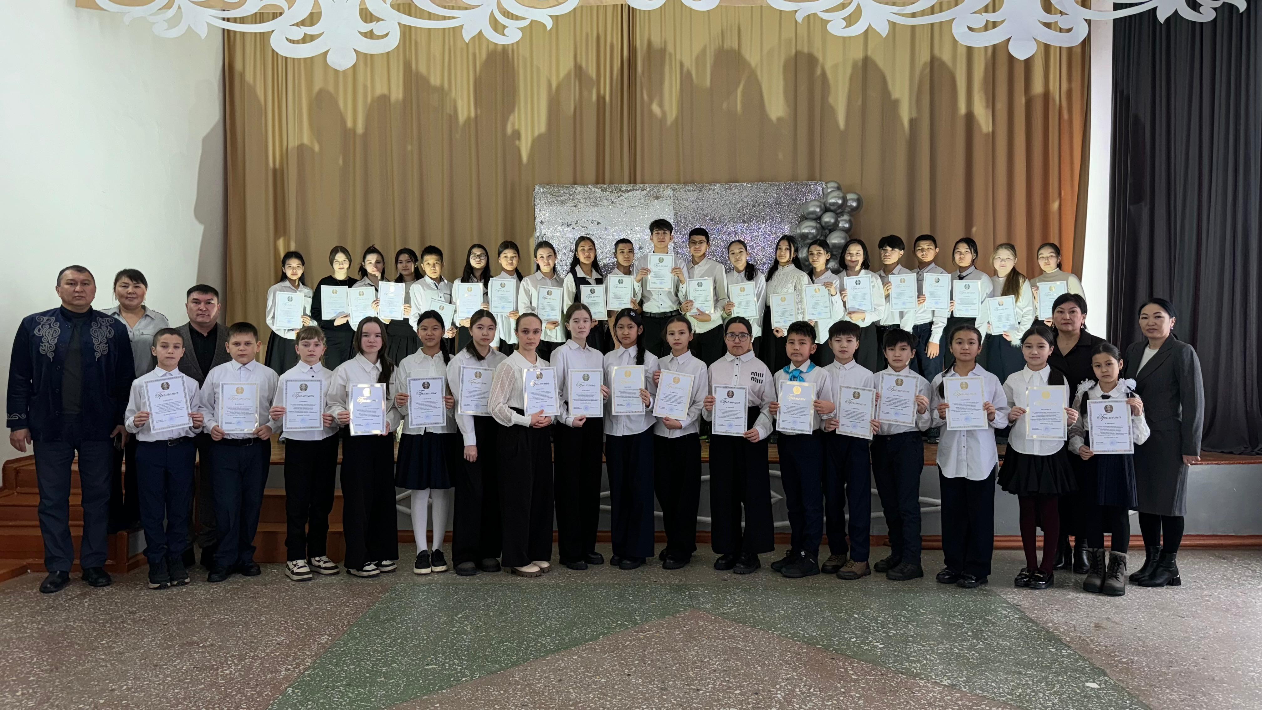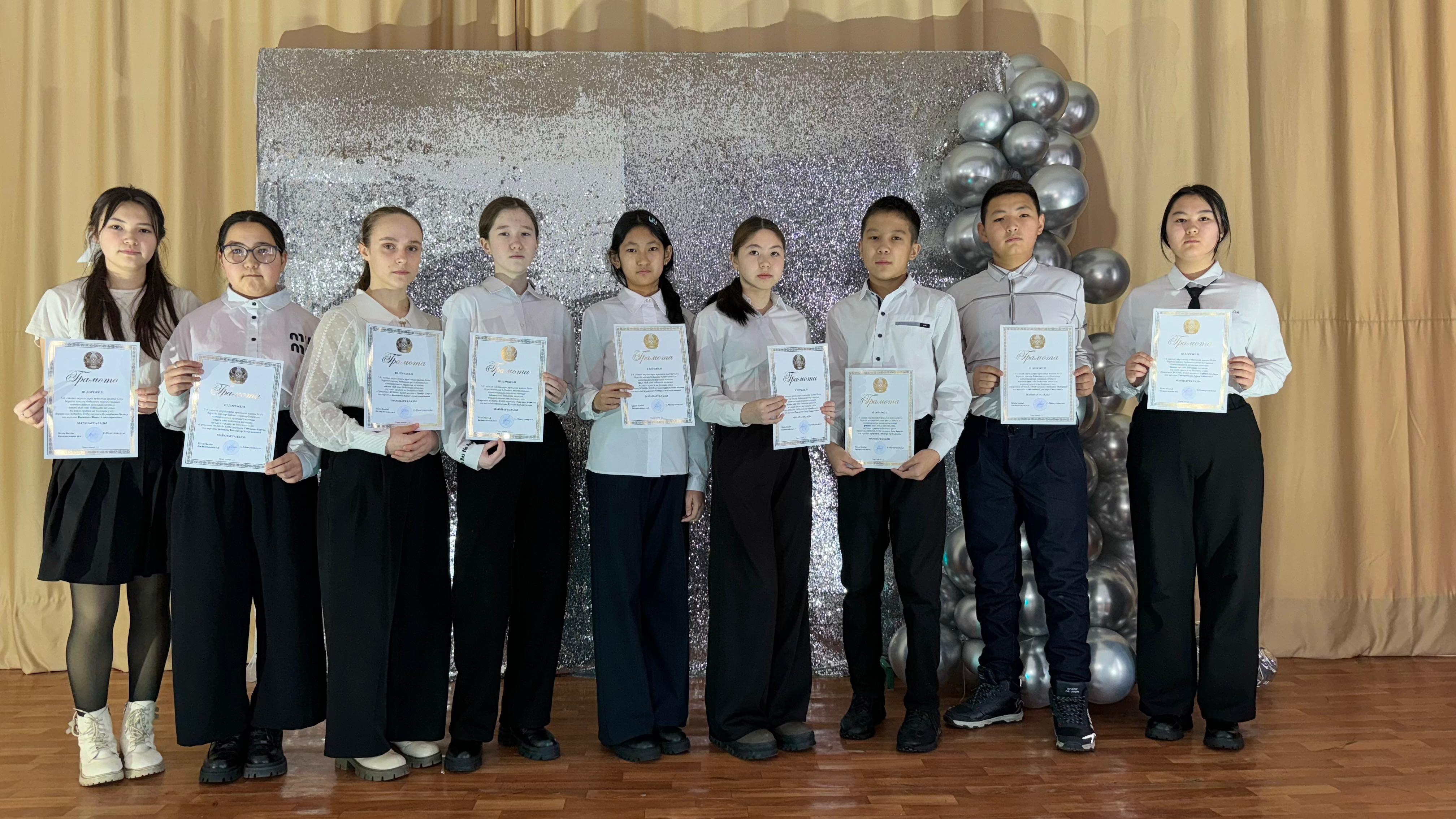 06 январь 2025 0 1 2 3 4 5 Мектеп мақтаныштары Жалпы білім беретін пәндер бойынша республикалық олимпиаданың аудандық кезеңінің жеңімпаздары мен жүлдегерлері: 5-6 сынып, 7-8 сынып және 9-11 сынып оқушылары
