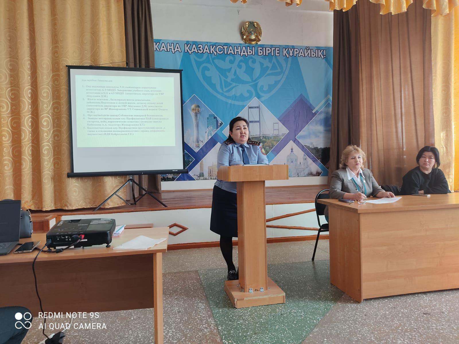 1. Оқу жылының аяқталуы, 9.11 сыныптарда қорытынды аттестаттау. 4, 9 МОДО. Завершение учебного года, итоговая аттестация в 9,11 и 4,9 МОДО (заместитель директора по УВР Абдуллина Динара Мухтизаровна)2. Жазғы мектепке , балалардың жазғы демалысына дайындық.Подготовка к летней школе, летнему отдыху детей (заместитель директора по УВР Абдуллина Динара Мухтизаровна заместитель директора по ВР Жамырзанова Умит Турсуновна Социальный педагог Омаров Муслим Жумабекович)3. Өрт қауіпсіздігін сақтау.Соблюдение пожарной безопасности. 4. Зиянды заттардың алдын алу. Профилактика ПАВ (электронные сигареты, вейп, наркотические вещества ) (психолог школы Кийкпаева Аалтын Алгатаевна медсестра Жамырзанова Бакыт Турсуновна.)5. Қылмыстың алдын алу. Профилактика преступлений среди , а также в отношении несовершеннолетних ( кража, сохранность имущества) (ИДН Сазанбаева Алмагуль Нурланбековна ) Мәселелер толық қарастырылды. Жалпы ата-аналар жиналысынан кейін , әр сыныптарда жеке ата - аналар жиналысы өтті.