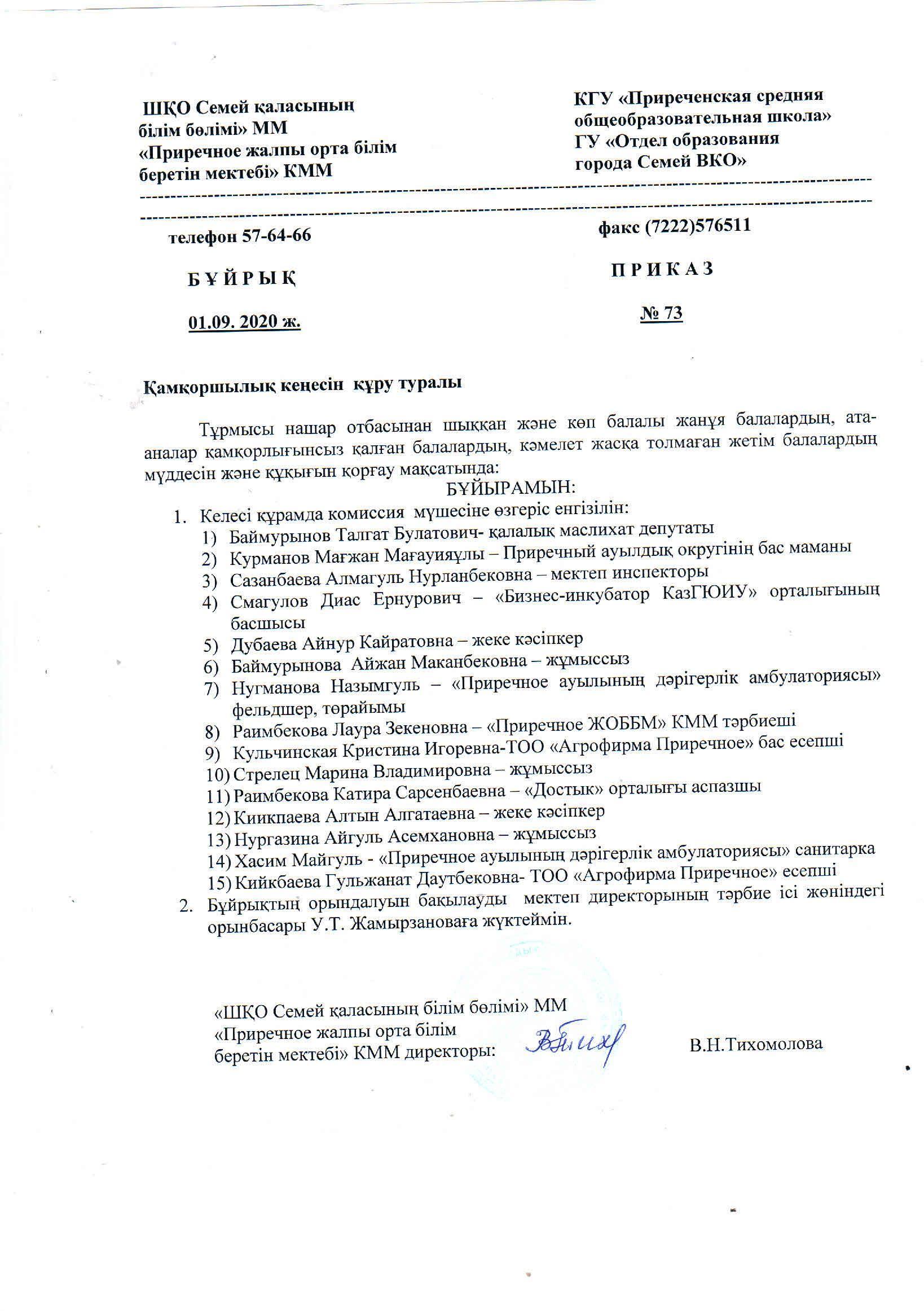 Қамқоршылық кеңесін құру туралы » Приреченская средняя общеобразовательная школа