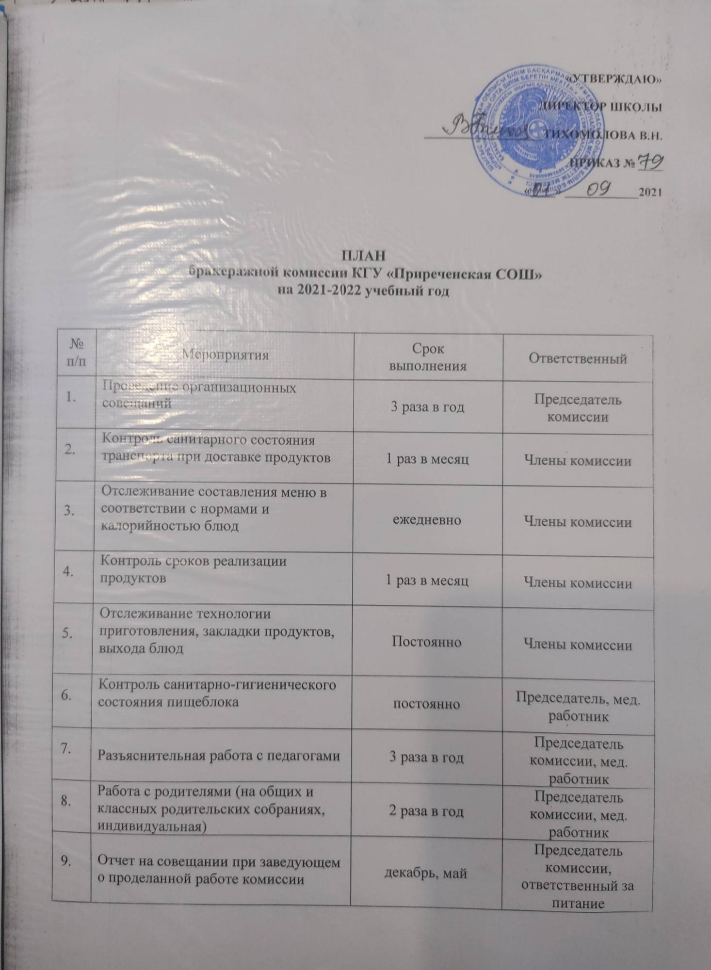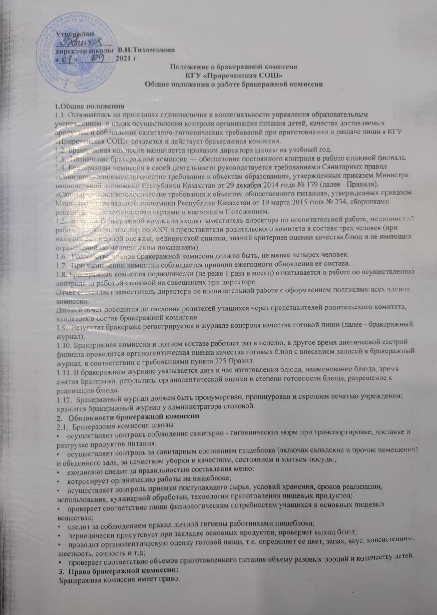Положение и план о бракеражной комиссии » Приреченская средняя общеобразовательная школа