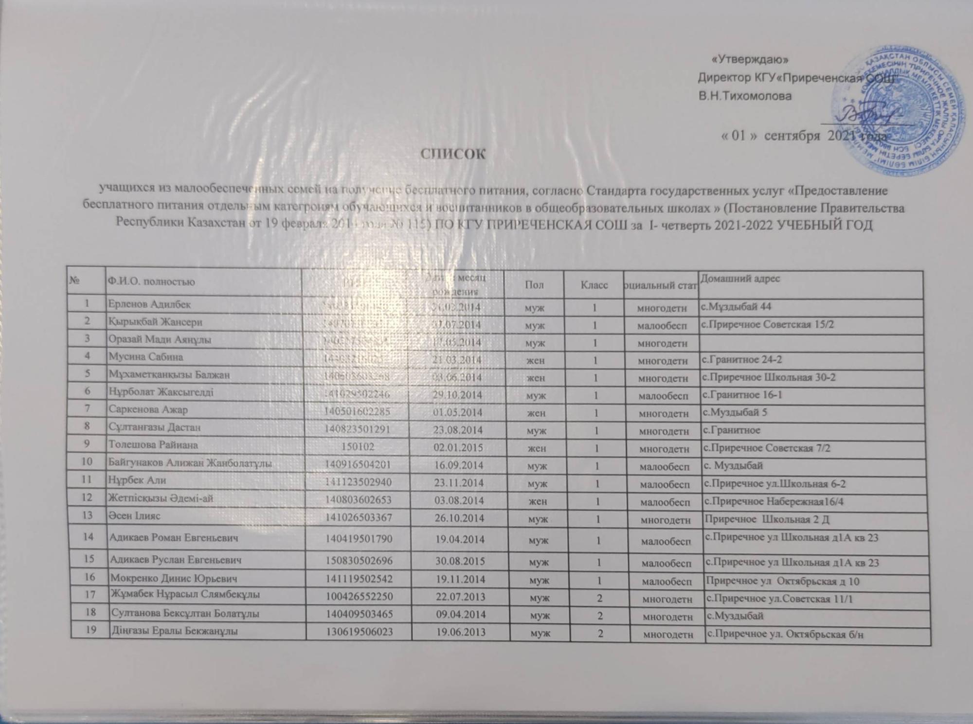 Список учащихся на получение бесплатного питания » Приреченская средняя общеобразовательная школа
