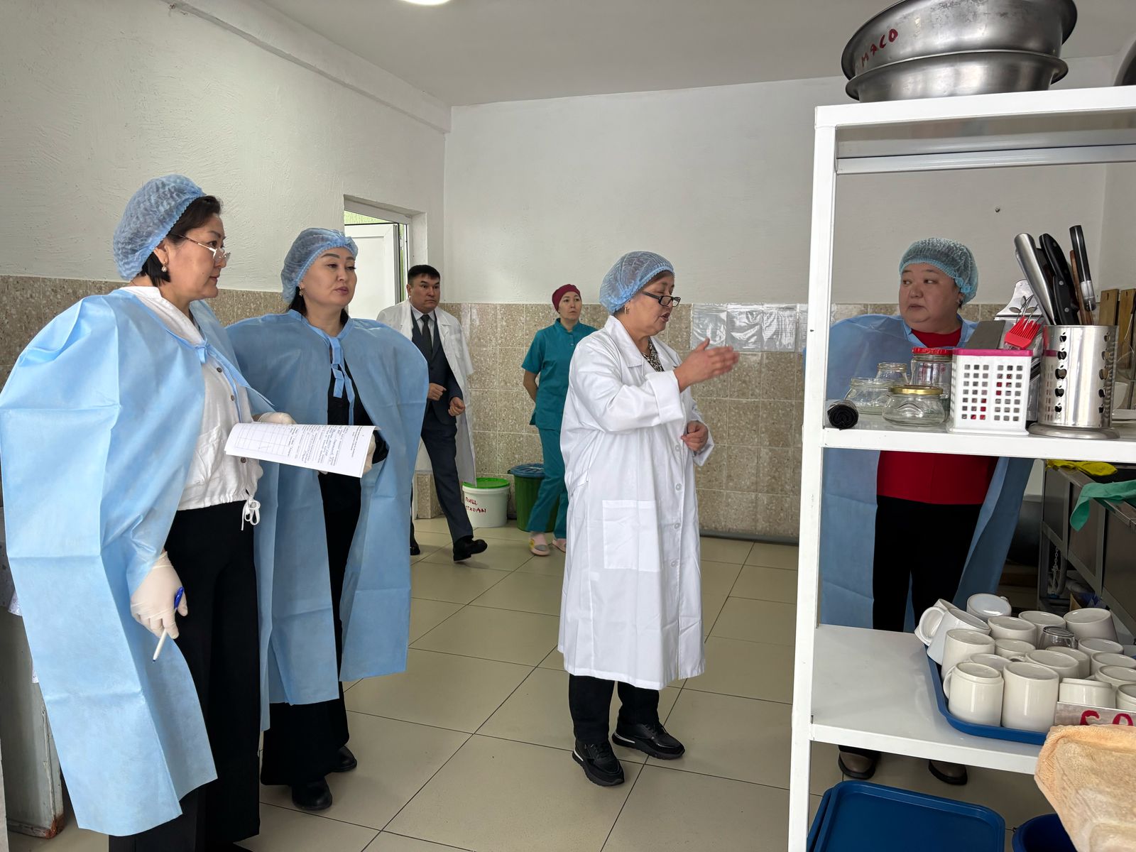 "Приречное ЖОББМ" КММ-де Жаңасемей ауданы білім бөліміне қарасты мектептердің тамақтандыру сапасын бақылау жөніндегі ведомствоаралық сараптамалық тобының жұмысын ұйымдастып, мониторинг жүргізген тәрбие бөлімінің әдіскері Ш.Т. Шакенова.